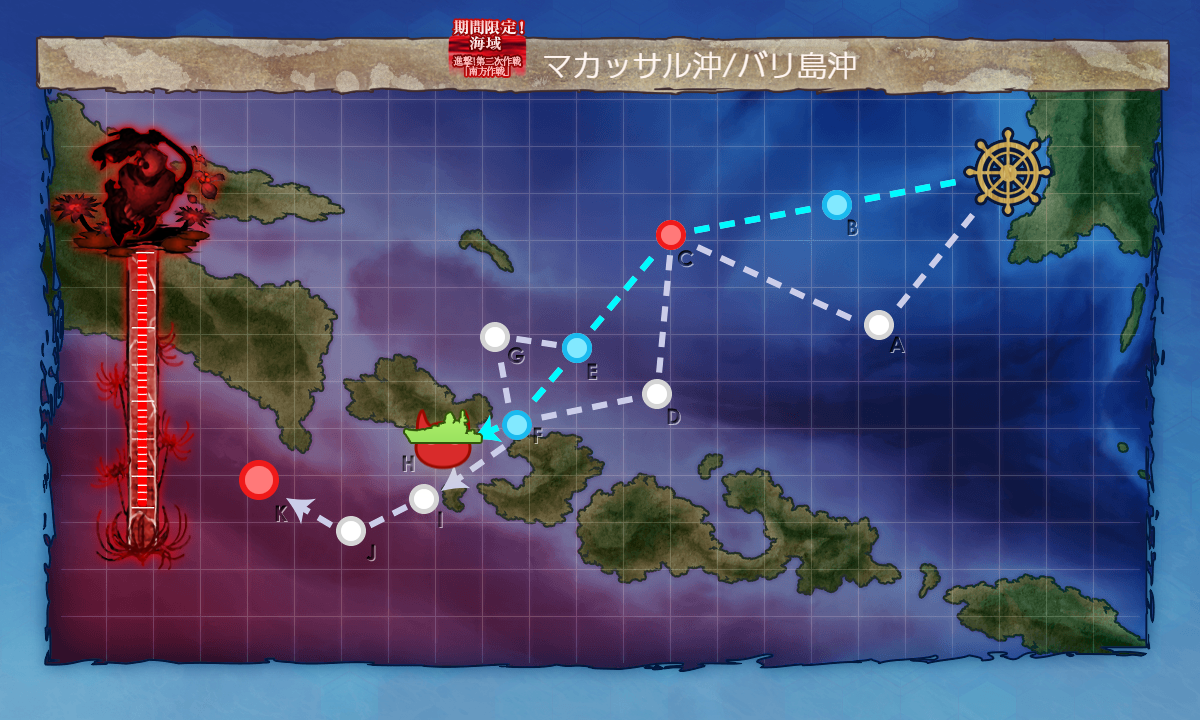 新しい航路と新しいボスマスが出てきて第二段階開始。こちらも大したことはないですが_(:3 」∠ )_