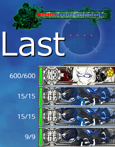 ボスマス(H)の「集積地棲姫」の耐久と連動するゲージを破壊するとクリア。