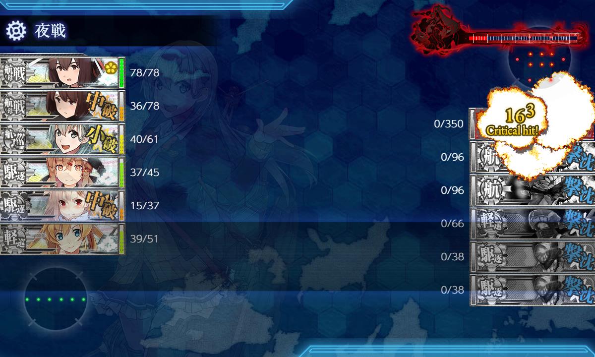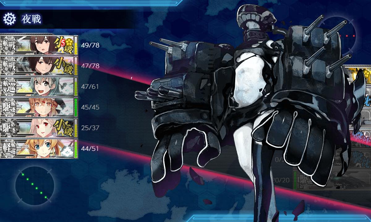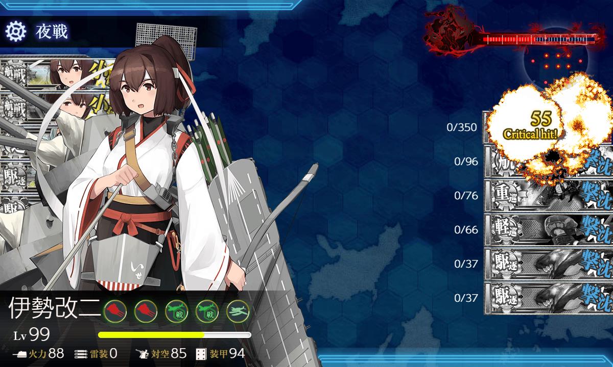 日向が微小なdamageを受けただけで昼戦で空母棲姫だけに出来たので余裕 最後も日向。