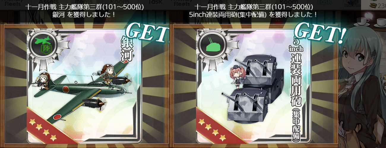 前回は"野中隊"で今回"銀河"配布と考えると新春任務で上位陸攻配布とかですかねー?