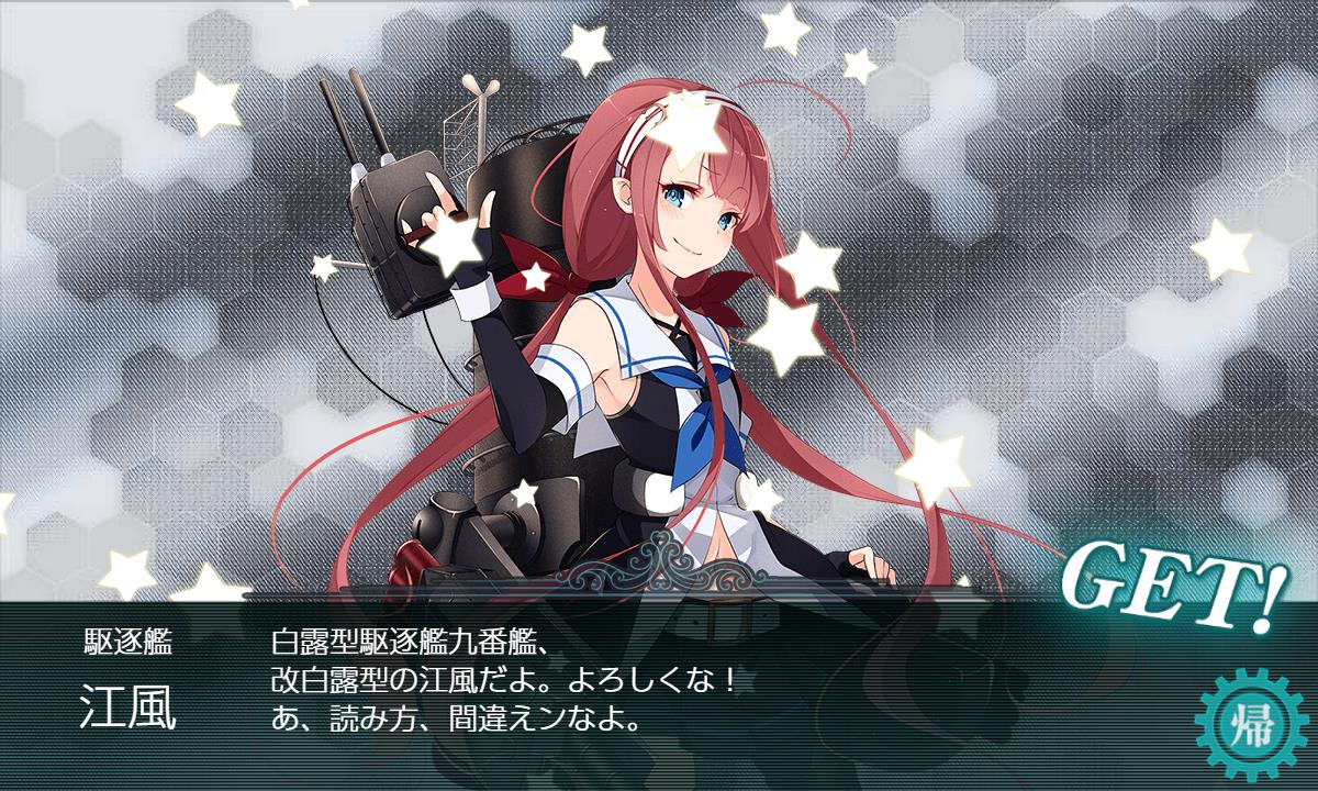 「江風」ドロップは凄い久しぶりな気がします(・◇・)通常海域は勿論イベントでも最後に見たのはいつだろう……。
