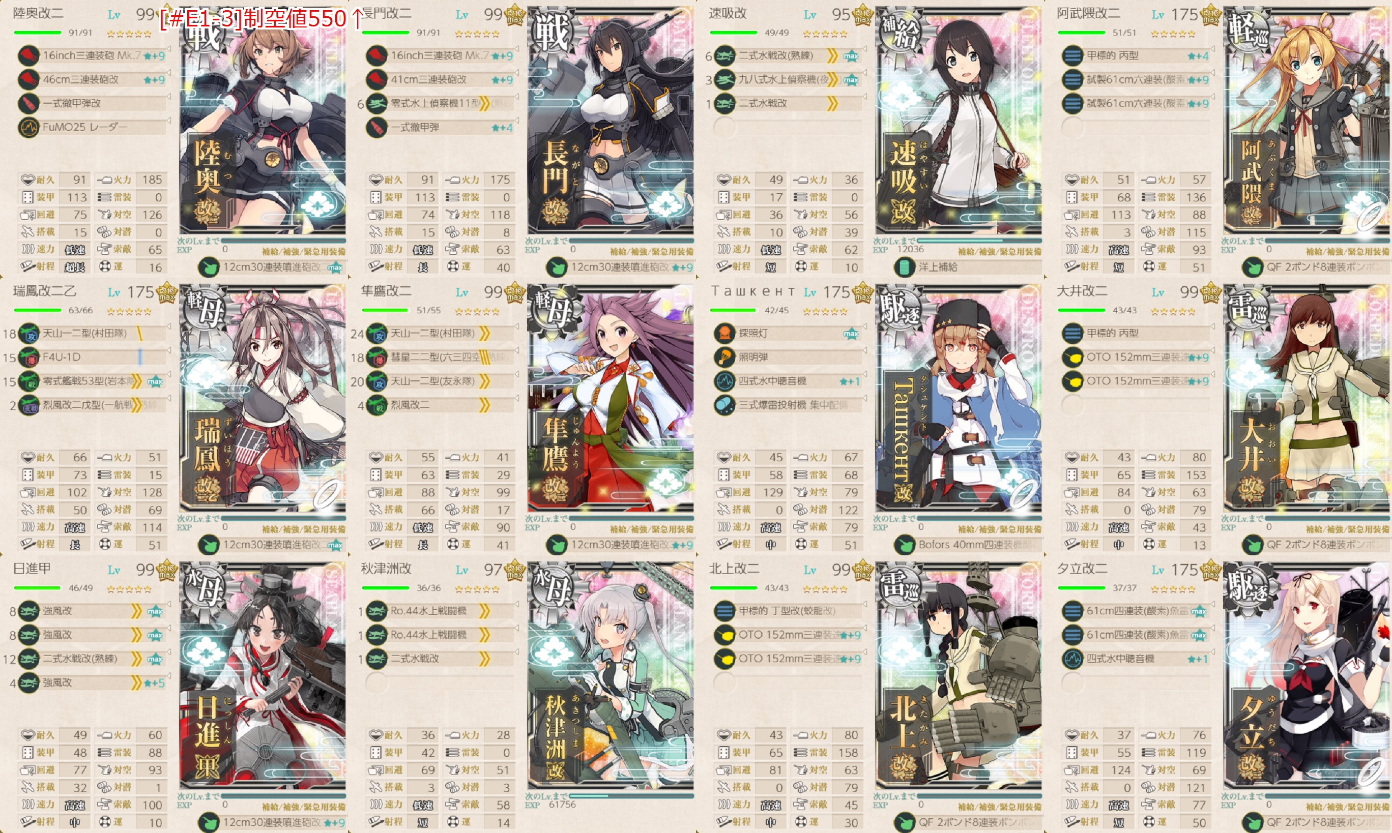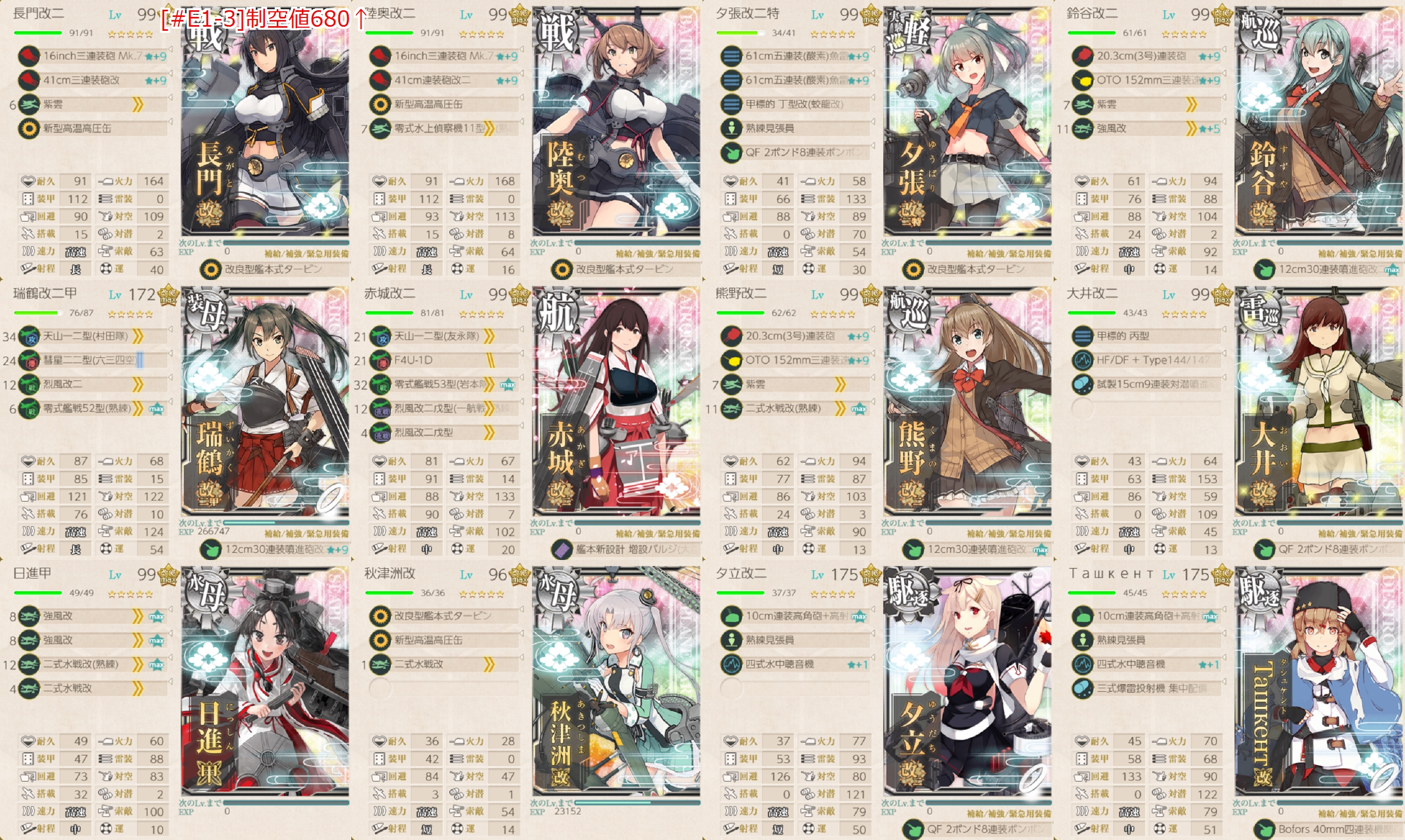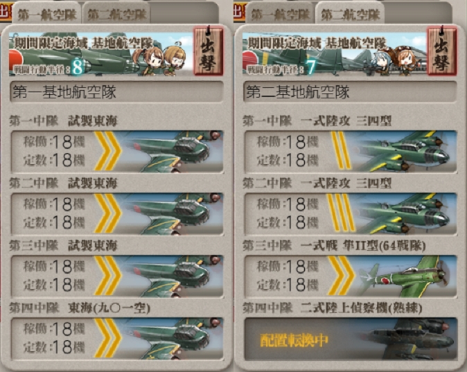 "64戦隊"もそうなんですけどたまに下がってそうなると制空値が足らなくなるのでその場合熟練度上げしましょう。