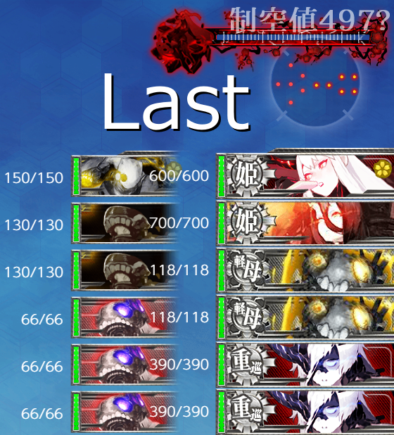 まさかのラスダン一発クリアでした。最終?海域一発クリアは5年半やってて初めて。