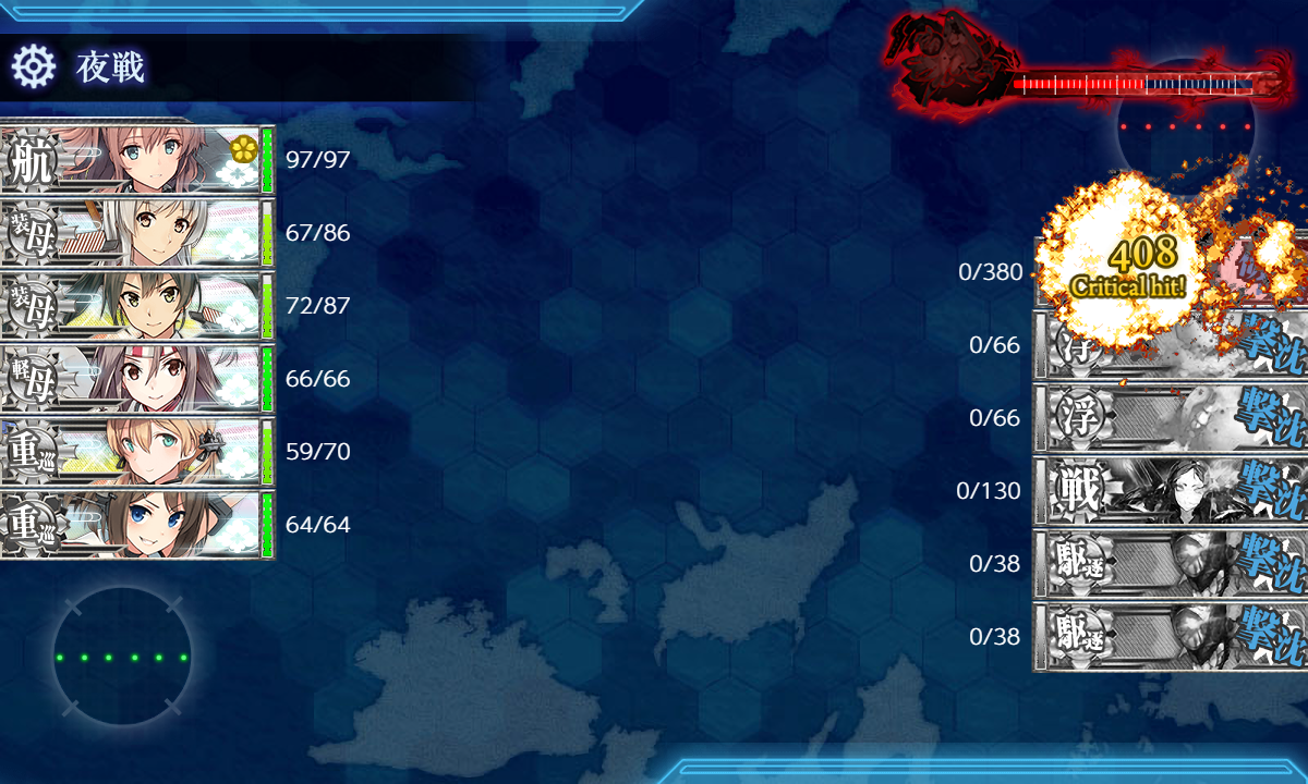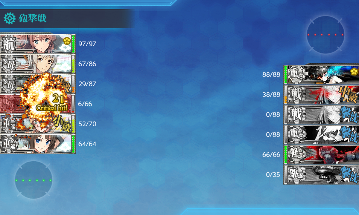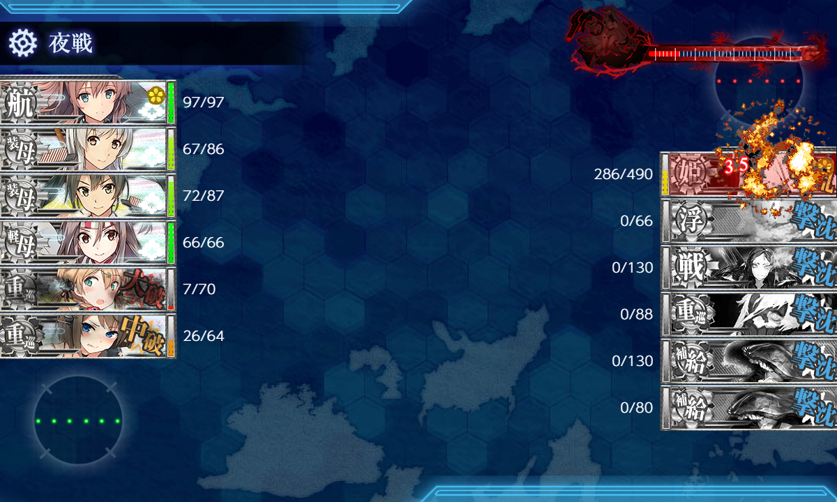 今月の[#4-5]はこんな感じでした。昼戦撃破も多かったですし撤退時以外の被弾も少なかったので可もなく不可もなくですかね(・◇・)"三式弾改★4"の違いは……うーん……昼戦撃破が多かったのはこれのおかげなんでしょうか。