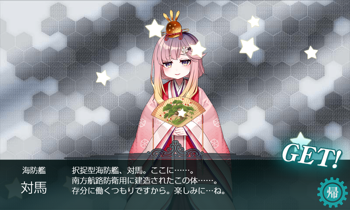 ちなみに【桃の節句任務】に必要となる「沖波」とか「対馬」は攻略中にドロップしました(・◇・)