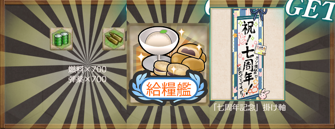 六周年は「金剛」の掛け軸だったので今年は「比叡」なのかな?とちょっと思ってましたが七周年ということで第七駆を優先した形ですかね?となると来年は第八駆かも?なんだかんだ「朝潮」とかがはりきりそうですし。