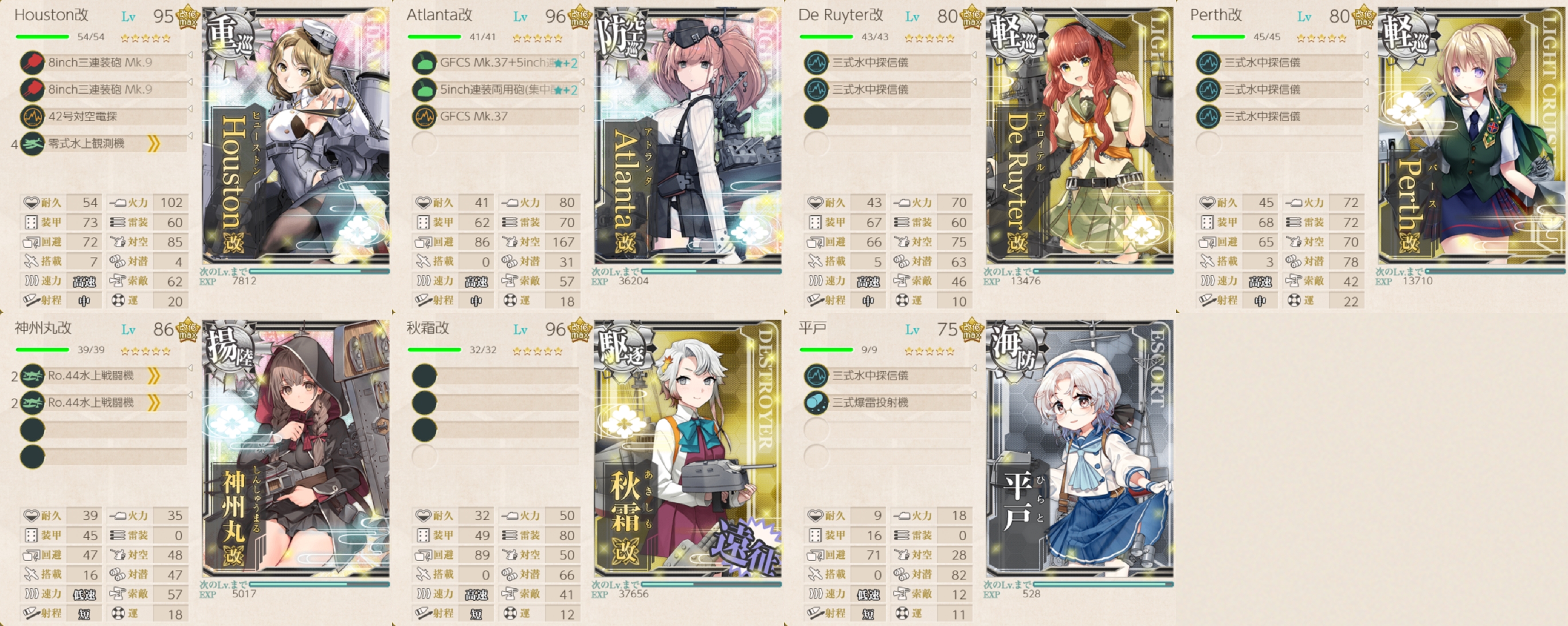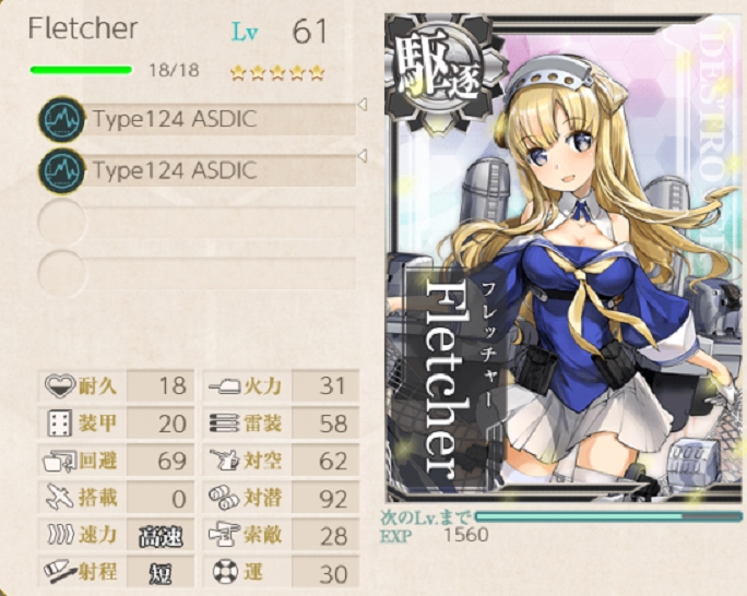 強いて言えば一応2人目の「Fletcher」は確保済みで演習でレベリングはしてますけど流石に88Lvは厳しい……。