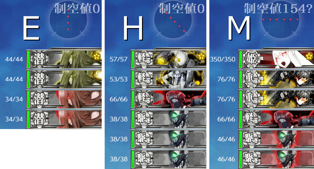 それで2回分削るので第二は恐らく"陸攻"×4で航空均衡になると思いますがまぁ航空劣勢止まりでも充分なのでこの形。
