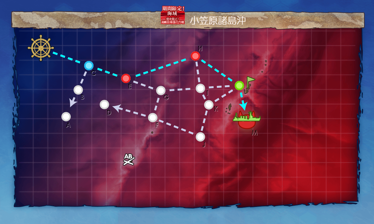 ボス(M),[第四陣形]基地航空隊も送れるのでまずA勝利は取れます。魚雷CI艦を編成すればS勝利率も上がると思います。
