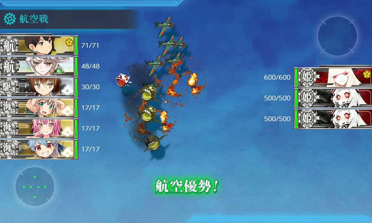 それが厳しいのでサブの秋月に対空カットイン、他は対空砲を装備させてしのぎました。
