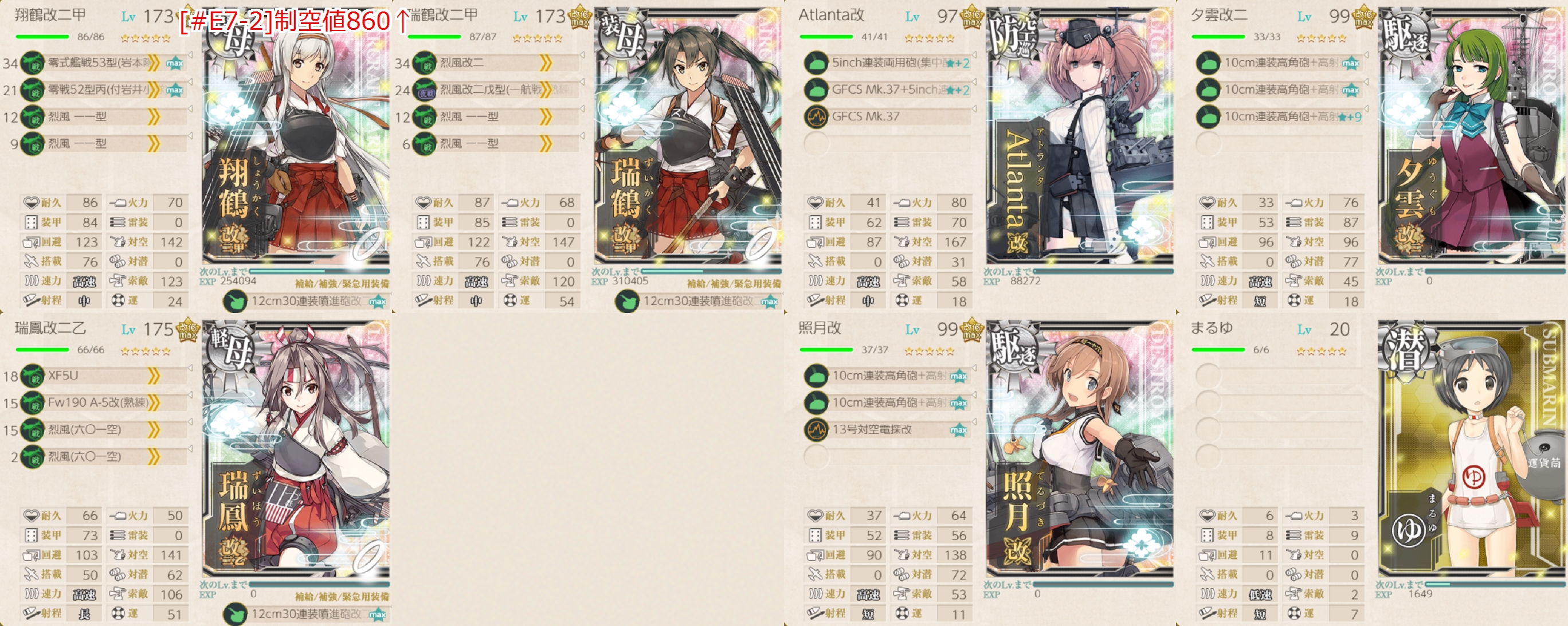 逆にその点に注意すれば五航戦や「瑞鳳」「Atlanta」のような主力艦をこの時点で編成しても問題ありません。