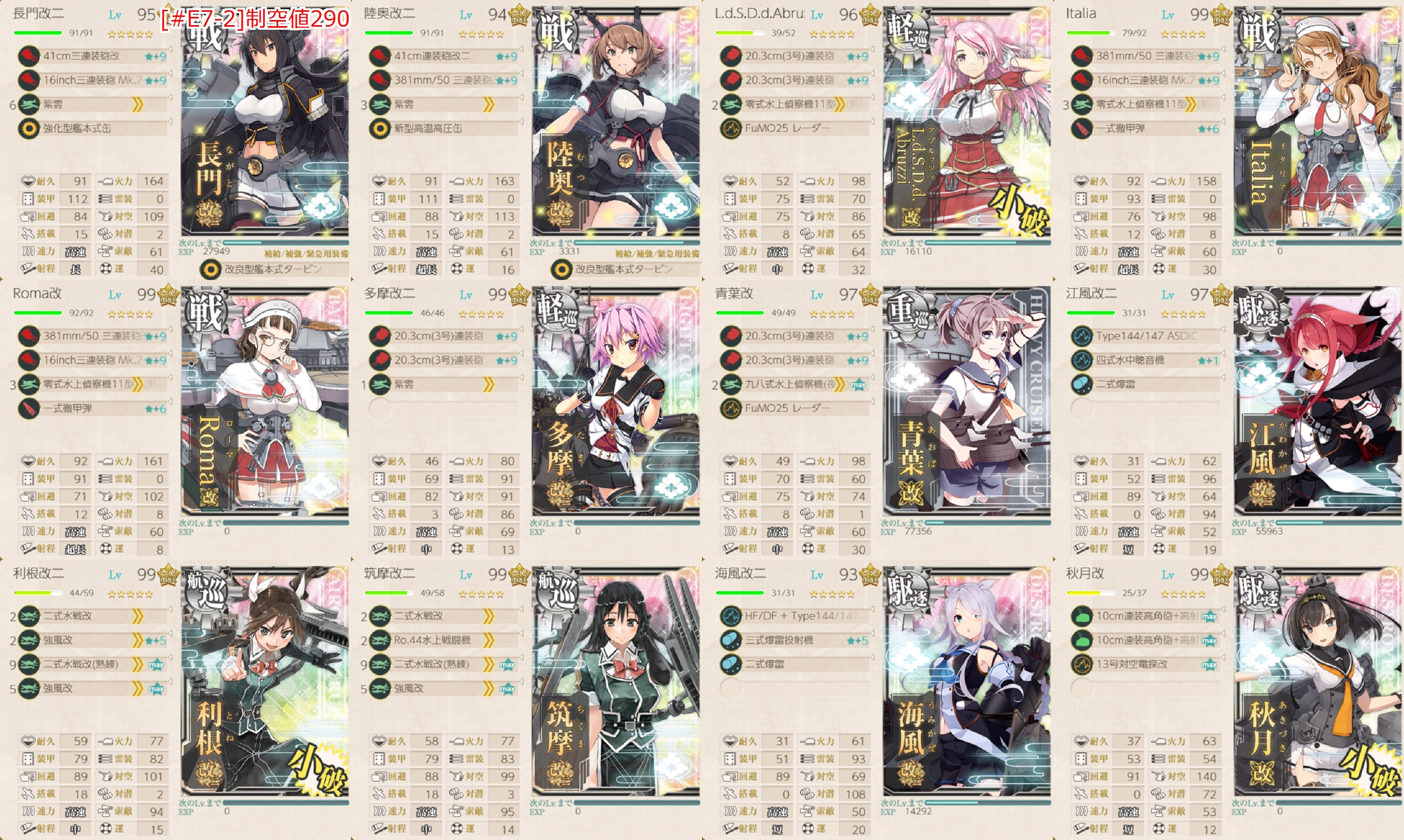 空襲戦×2なのでただ制空値を稼ぐだけですがこの"空母機動部隊"編成が[#E7]における主力艦になるので