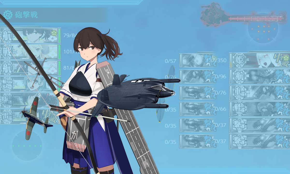 ゲージ破壊後であれば制空値356↑で良いので余裕がありますが搭載的に空母は弄れないので……航巡ではなく「摩耶」とか編成して防空補助とかがいいかな?というかゲージ残存状態でも制空値が足りそうなのでお好みで。