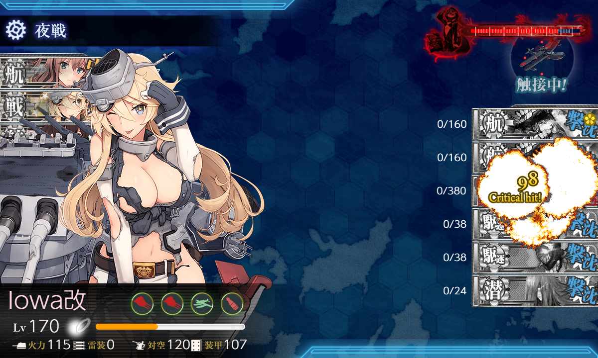 久々の上√編成。「加賀」は夜襲CI仕様にしようかなーとか考えたので旗艦になってますがまだゲージを1回も削ってない状態ですしなんとかなるだろうと結局そのままなので旗艦は「Iowa」の方が良かったですね(・◇・)