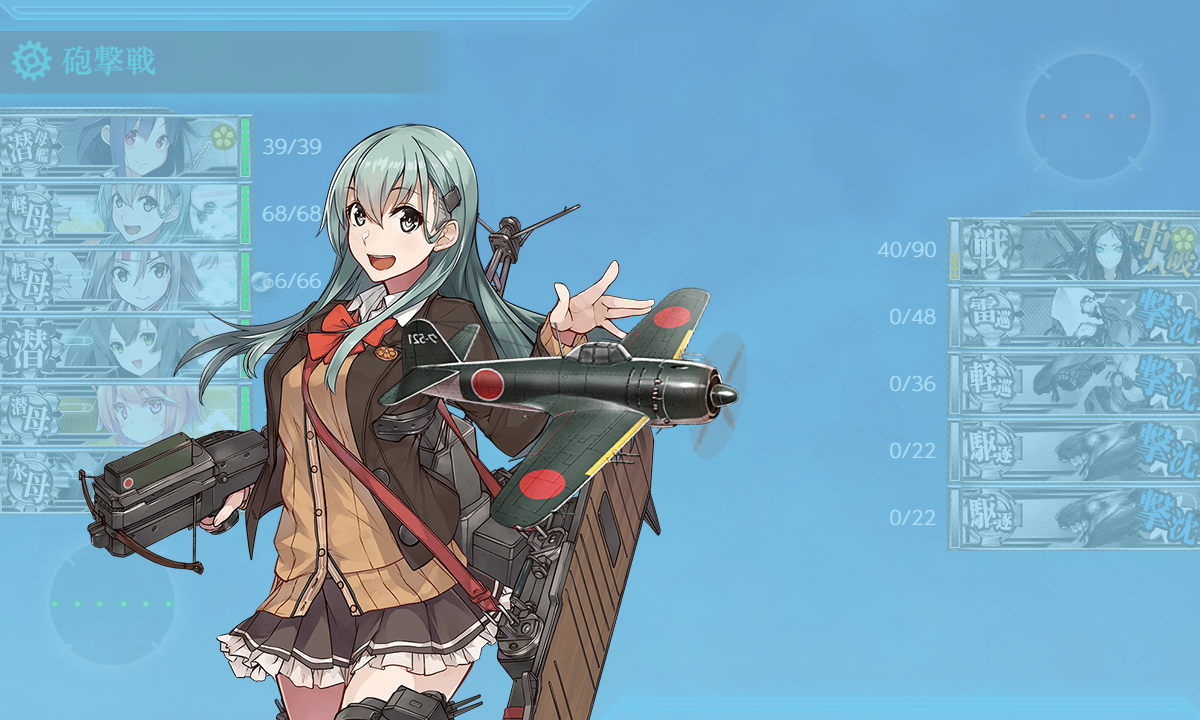[#1-2]も他の海域用の編成と一緒でも良いんですがいつもみたいに"駆逐/海防4"+5人編成で固定出来ないので少しでも到達しやすいように4人編成で出撃してみました。