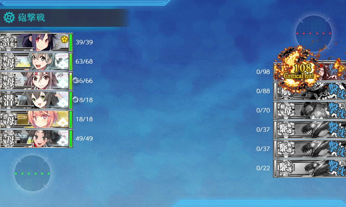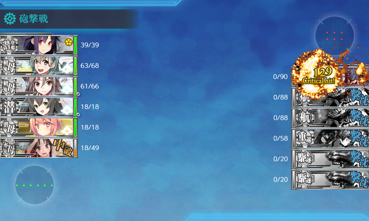 「鯨」任務はこんな感じでした。どの海域も開幕火力が良い感じに通ったので「大鯨」が1回も攻撃してないような……。