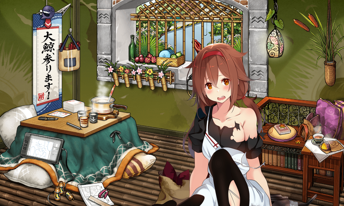 家具も良い感じ(・v・ )最後に被弾しちゃったので「白露」は大破姿ですが……。