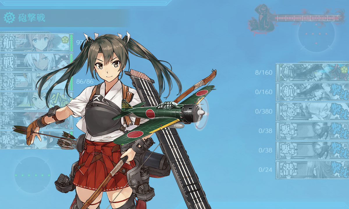 制空値は100(ボス戦時制空値84↑必要)もあれば制空権確保となるので"艦戦"はもっと少なめでもok。