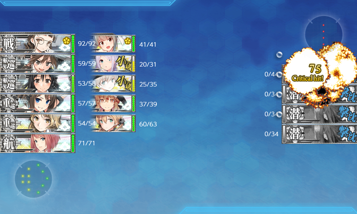 最後に"D/RマスS勝利"を狙いにいきます。この海域初の"水上打撃部隊"ですが相手は潜水艦なので楽勝です。