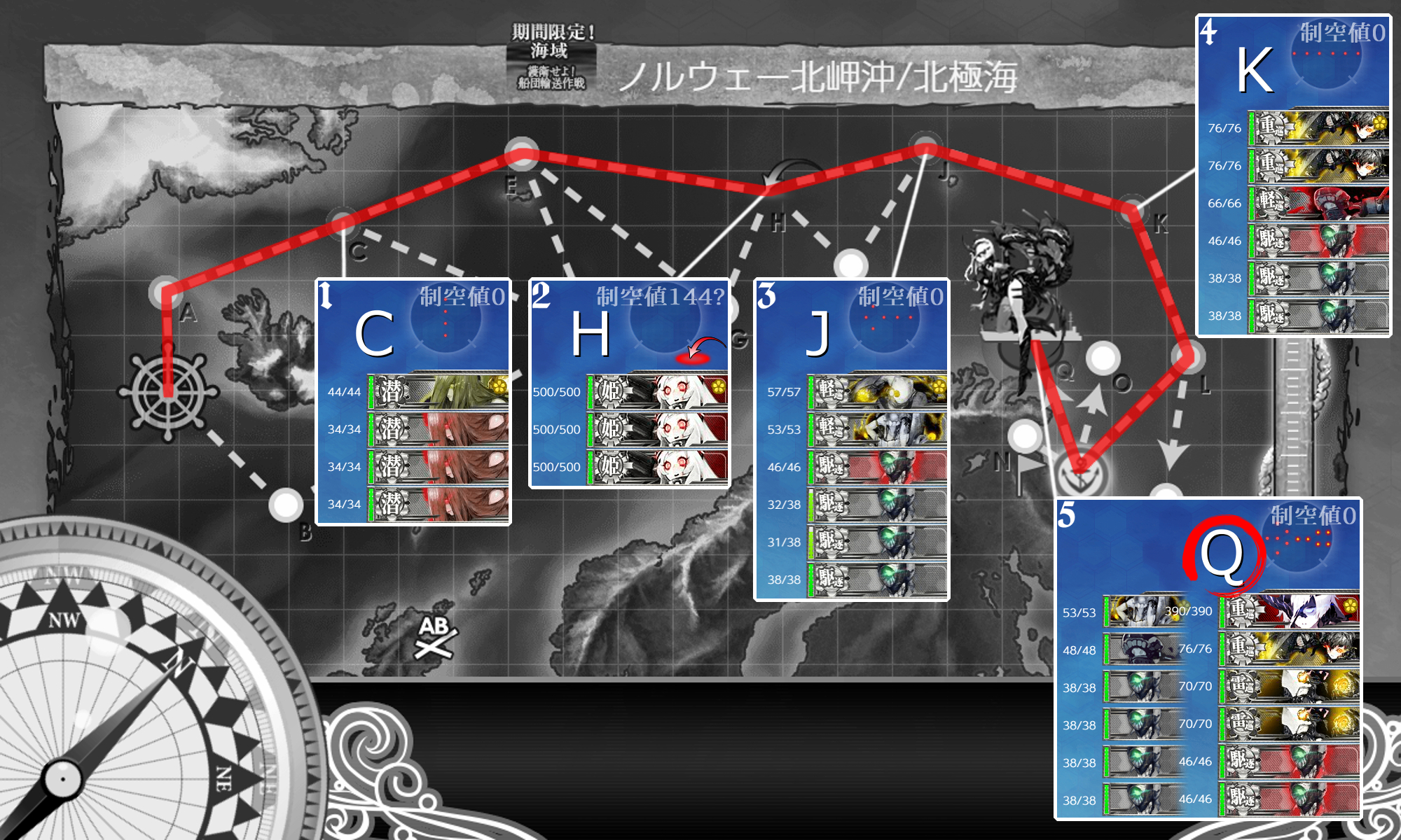 手順2で"Qマス(#E3-1ボス)S勝利"を取りにいくので火力要員にはちゃんとした装備を載せておくと吉(。・Д・)ゞ
