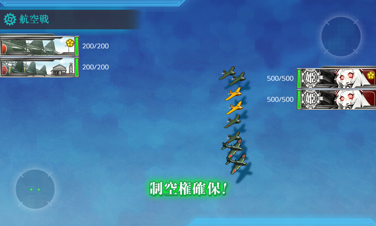 海域拡張1(ボスマス出現)これで"ボスマス出現"は終わり(。・Д・)ゞ2回とも"Hマス"で【空襲】が発生しました。