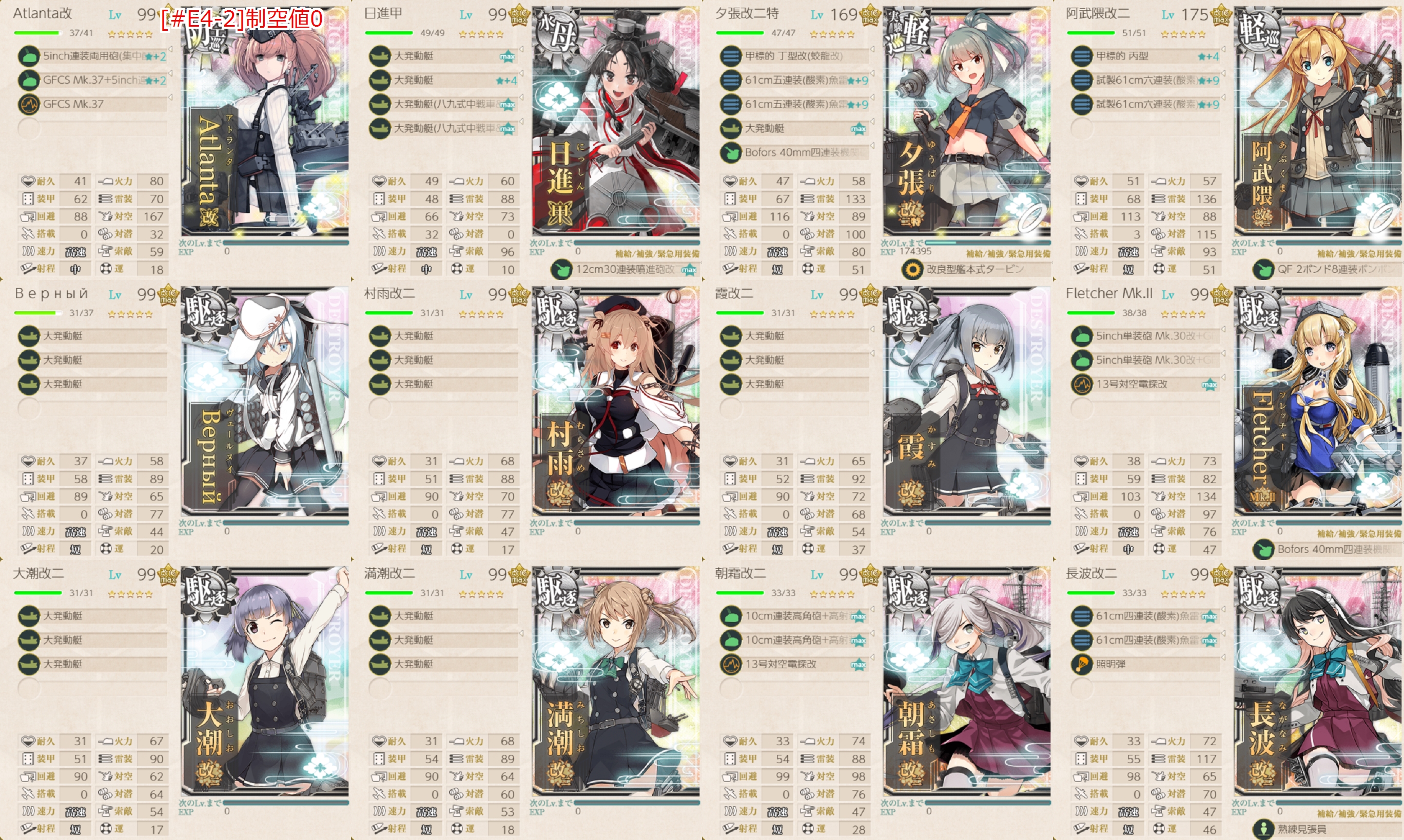 E4-1では姫×3のオンパレード、E4-2では警戒陣出まくりで結局すべてA勝利でした。