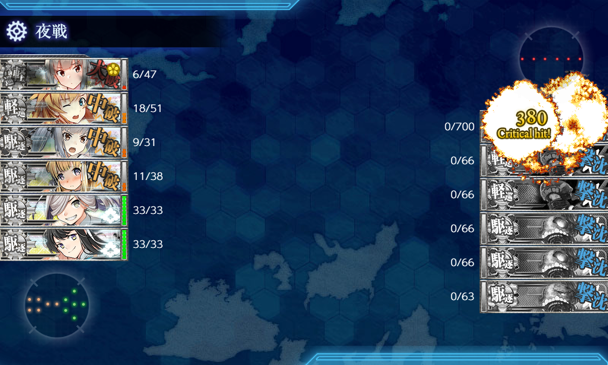 ナⅡは阿武隈夕張の開幕2射線と、5人魚雷CI仕様の閉幕でそれほど脅威には感じませんでした