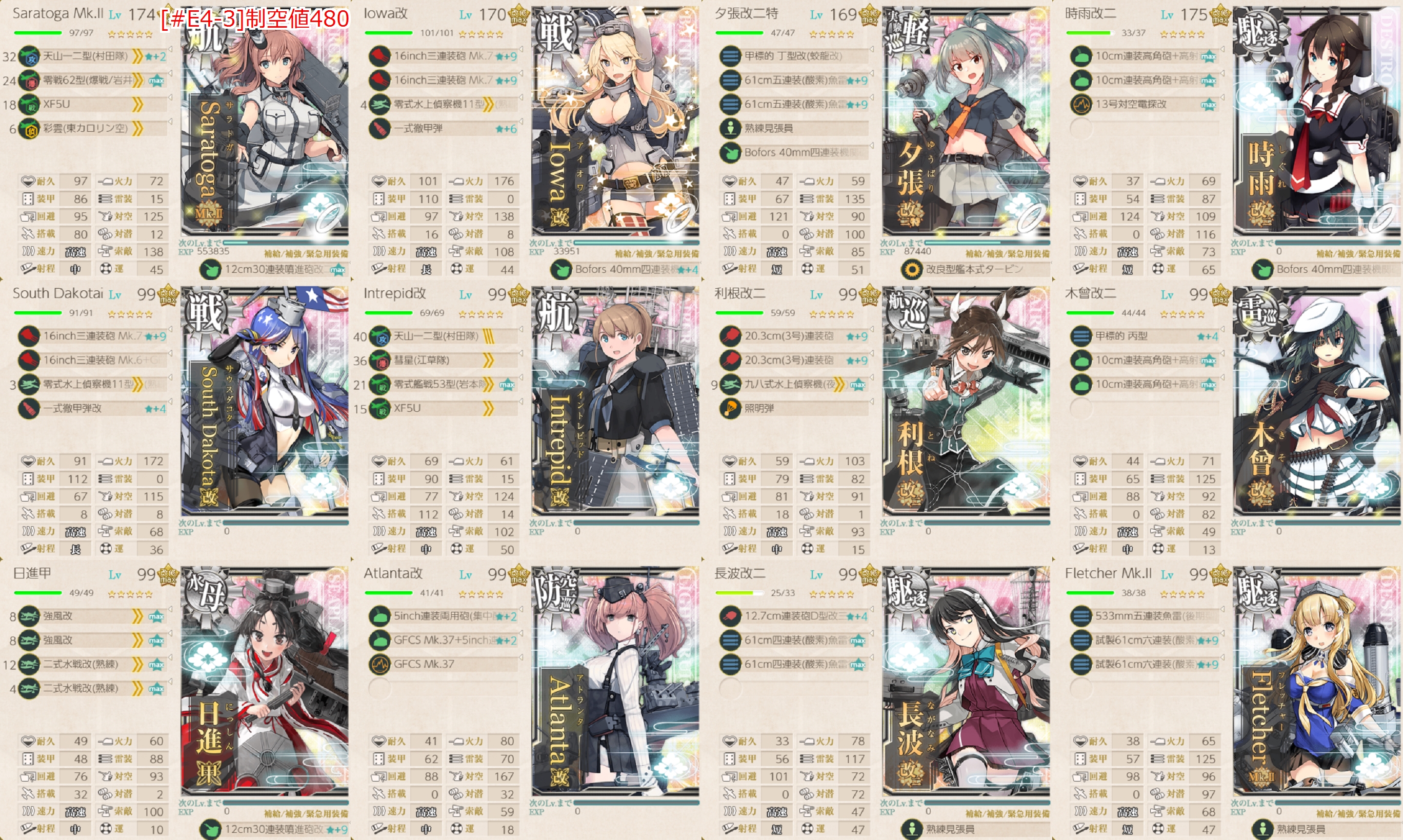 友軍くるまではいろいろ試したのですが、最終的には米空母3加賀利根由良 木曽羽黒Jervis時雨FletcherAtlanta
