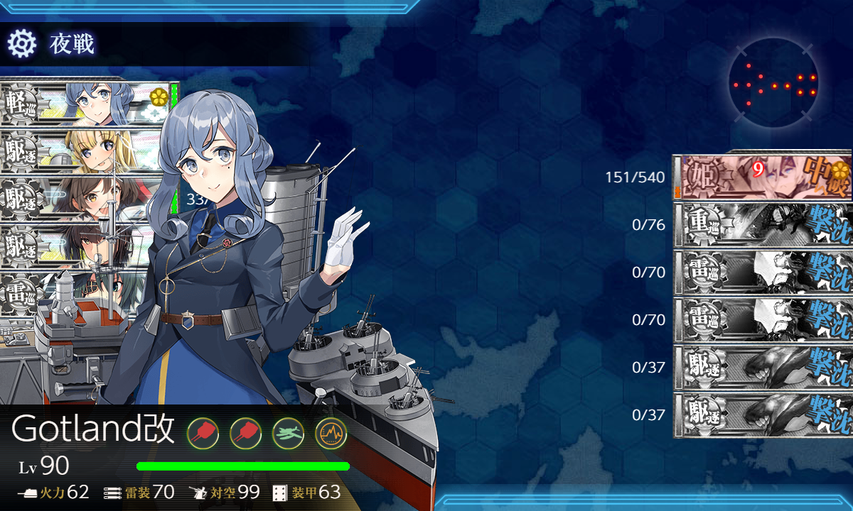 それか攻略記事でも書きましたが【空母機動部隊+(戦艦+空母)3↓+駆逐4↑】という方法もあり。