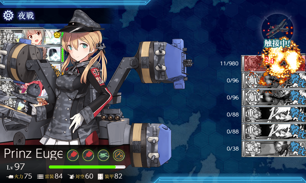 基地航空隊は適当に航空劣勢×4を"ボス(Z)"に全集中。ボス(Z)まで行動半径7必要なので四式重爆を使いたい時は注意。