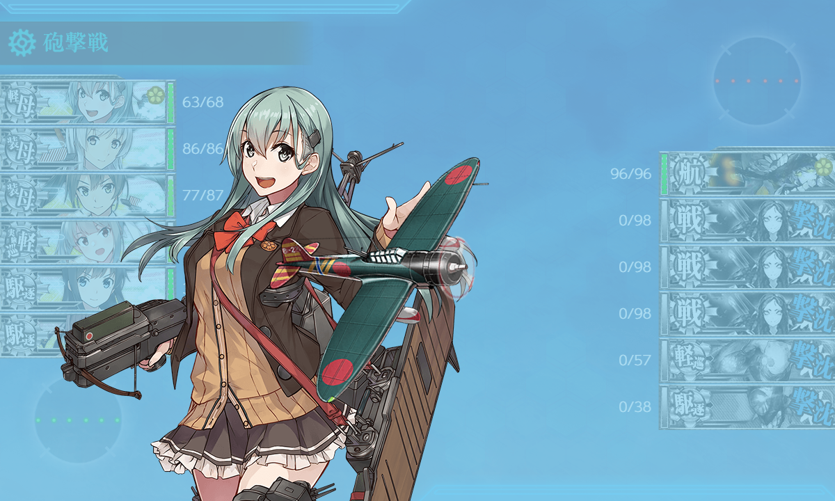 "水母"2人は特に戦力となる必要はないので適当な"水母/補給"で高速or高速化してあれば誰でも良いです。
