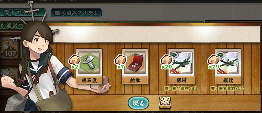 システム的には去年と同じかな?【節分任務】をこなすと"節分の豆"が入手出来てそれを使用すると【豆まき】パネルが展開して装備と交換出来ます(。・Д・)ゞ今年は"銀河/四式重爆 飛龍"両方を交換したいところですかねー。