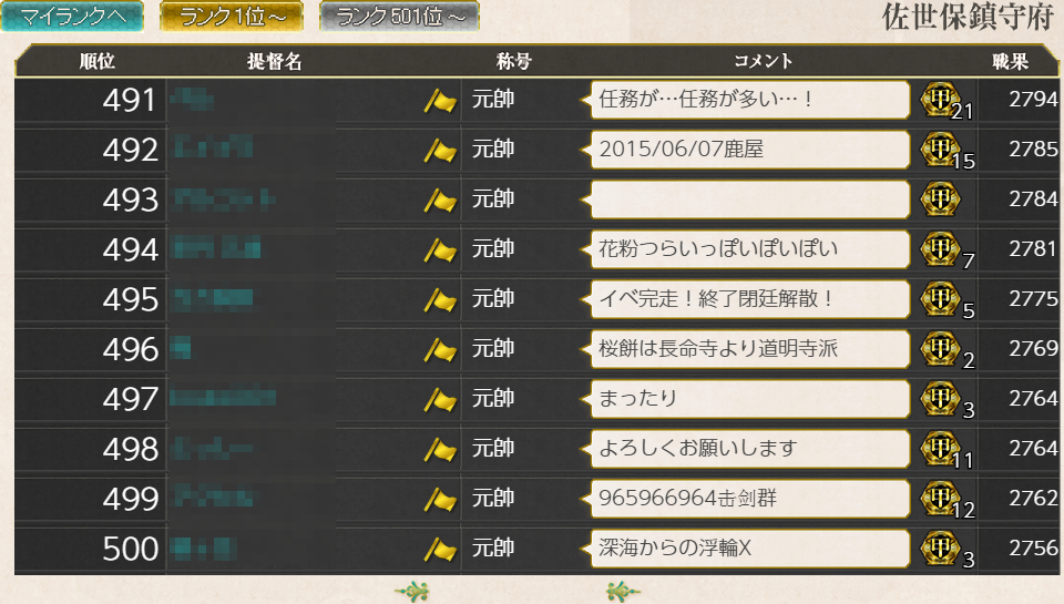 戦果に関しては+300UPの2745と低め。自分は780番台なのでキリ番やコメント以外では