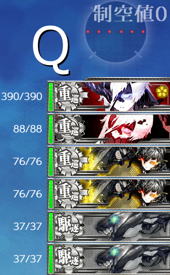もし"水母"編成が難しい場合は"水母"を"重巡/航巡"にして1戦増える"A-B-E-H-J-Q√"という選択肢もあります。