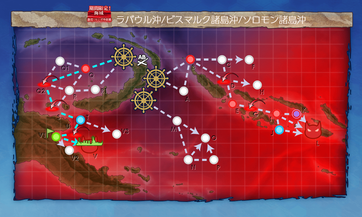 ボス(V),[第四陣形]敵が"警戒陣"を使ってきたりもしますが基地航空隊を2部隊も送ればA勝利は問題ないはず。