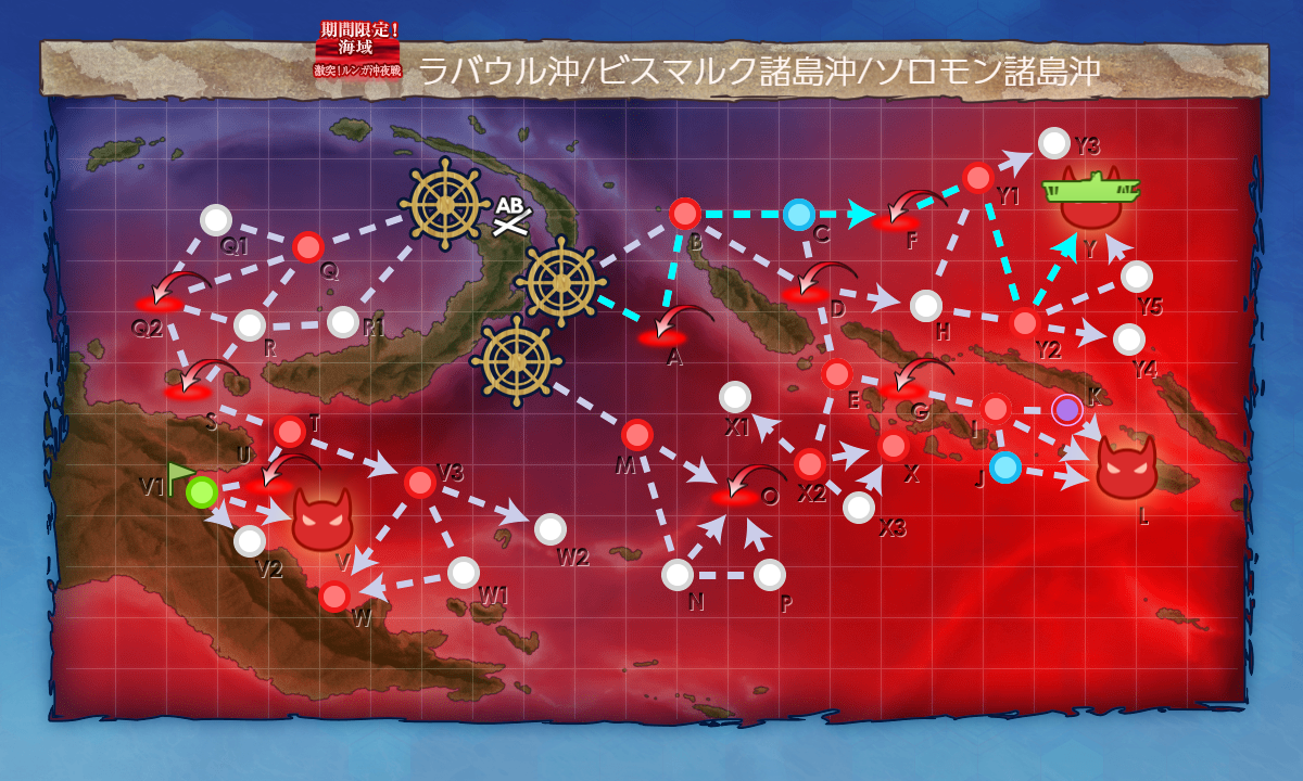 大破した以外なしです。自分は上の警戒陣がかみ合わなかったため下の連合艦隊から突破しました。