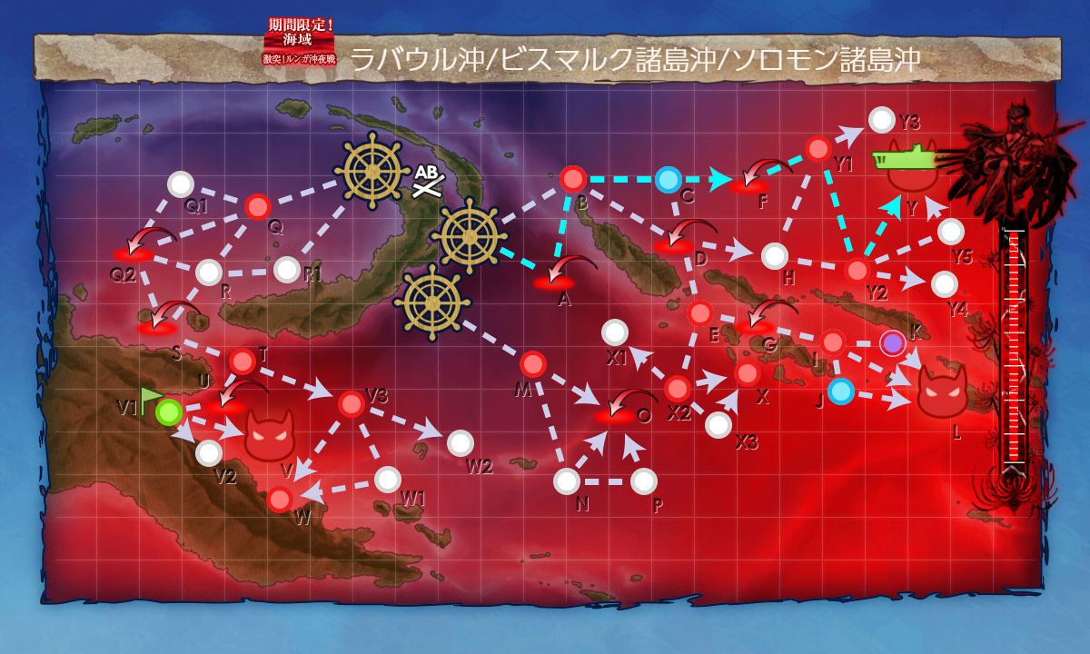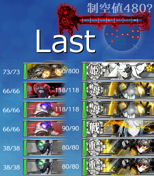 最終形態では"ヌ級"→"ヌ級改"+"ナ級II"が2隻増えて対空面が結構強化されるので基地航空隊や空母の火力が奮わないと撃破に手こずるかも。ただ姫級が増えたりはしないのでまだなんとかなるかなー?決戦支援もあり。