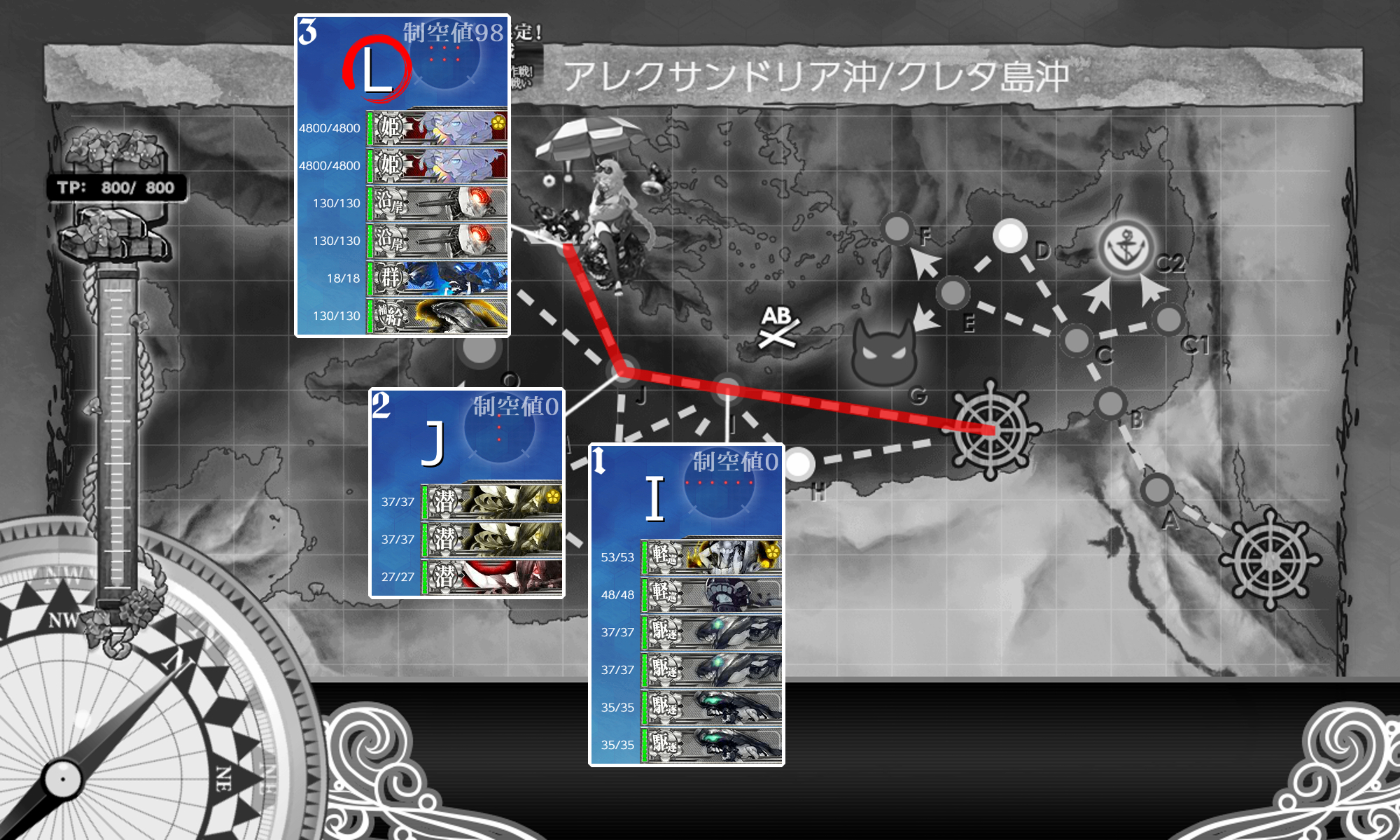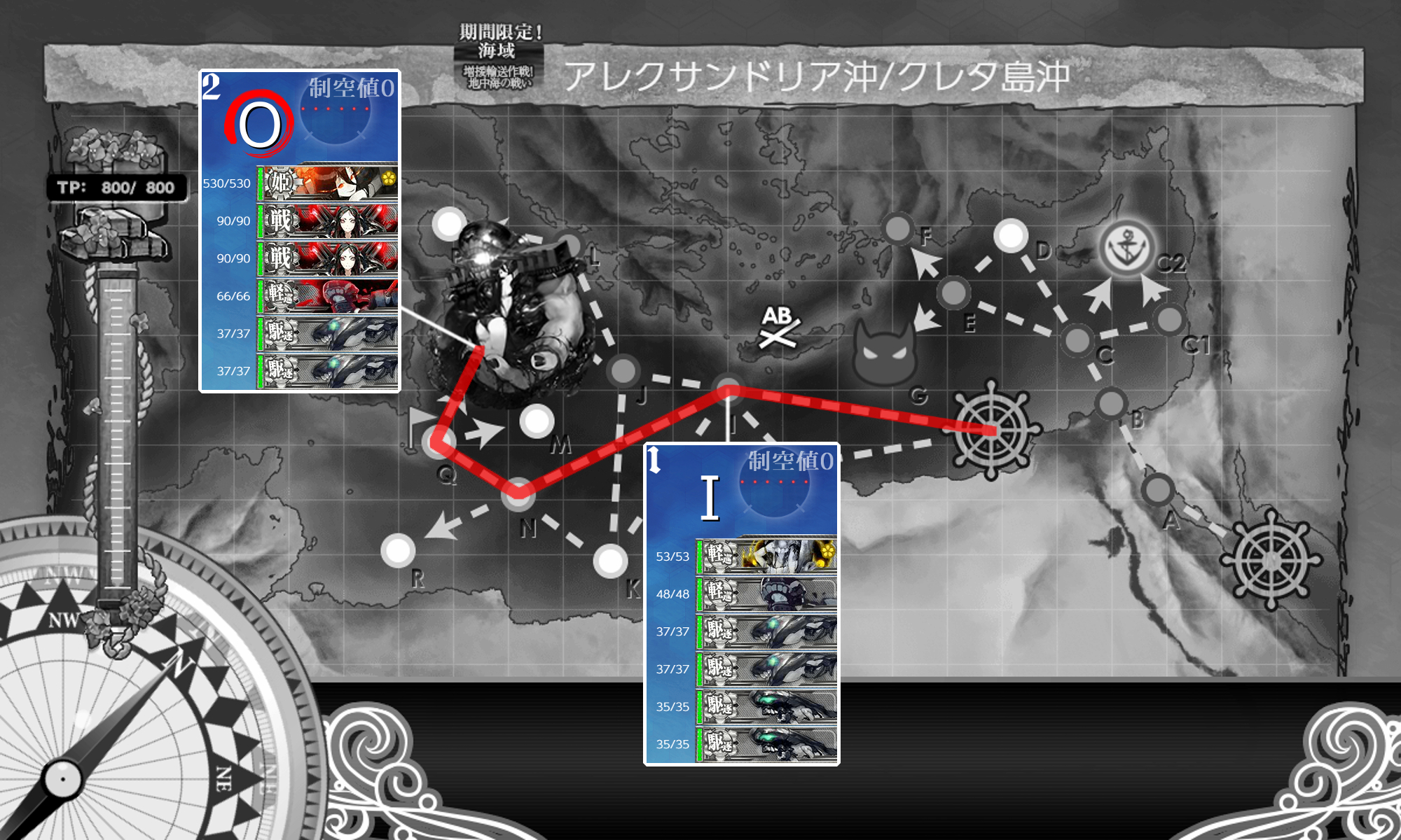 Oマスはガリバルティ(サブ)リシュリュー、コマンダン・テスト(サブ)荒潮、睦月、如月で実践。
