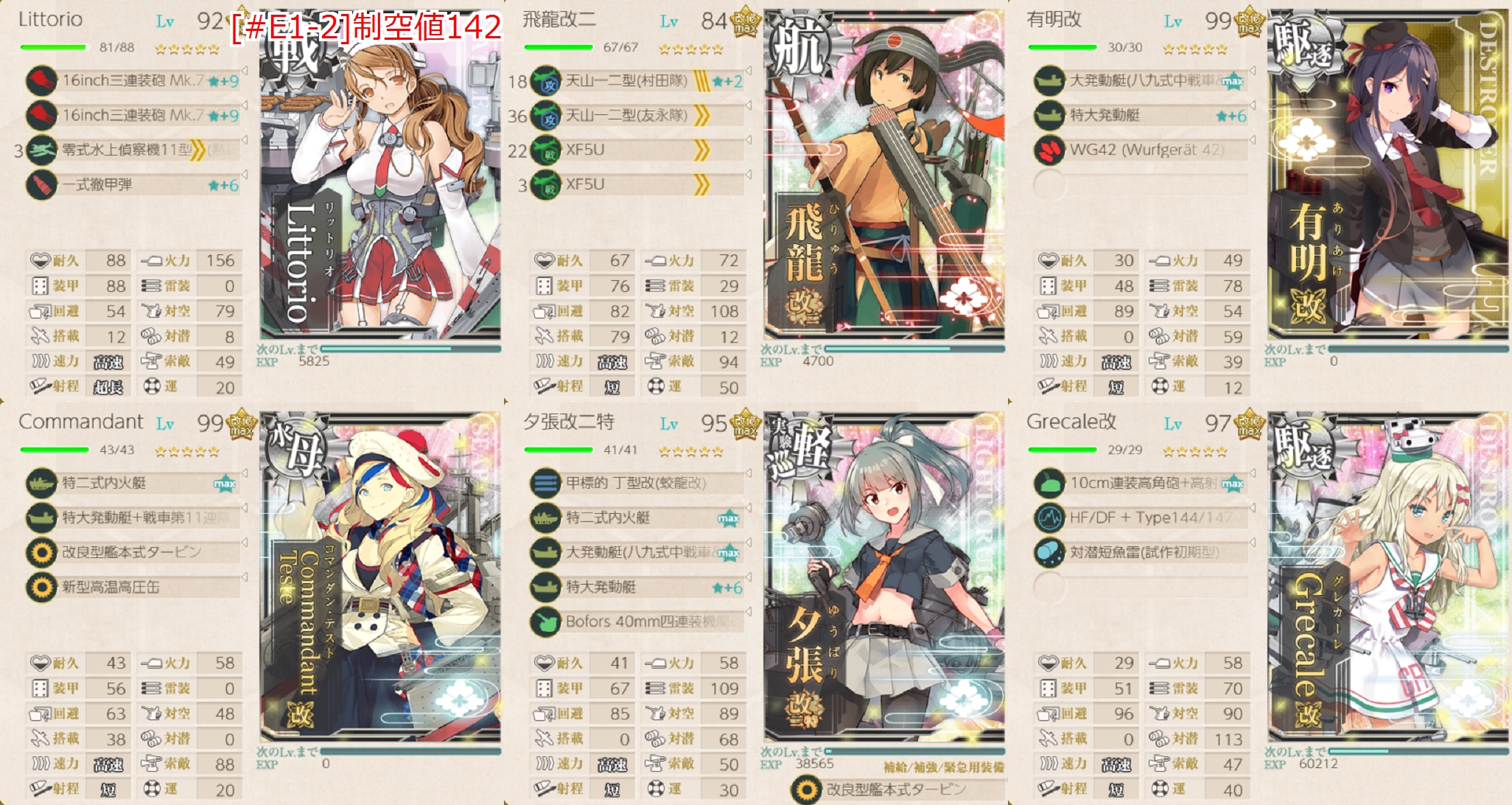 Lマスはガリバルティ(サブ)リシュリュー、飛龍(サブ)荒潮、コマンダン・テスト(サブ)睦月で実践。