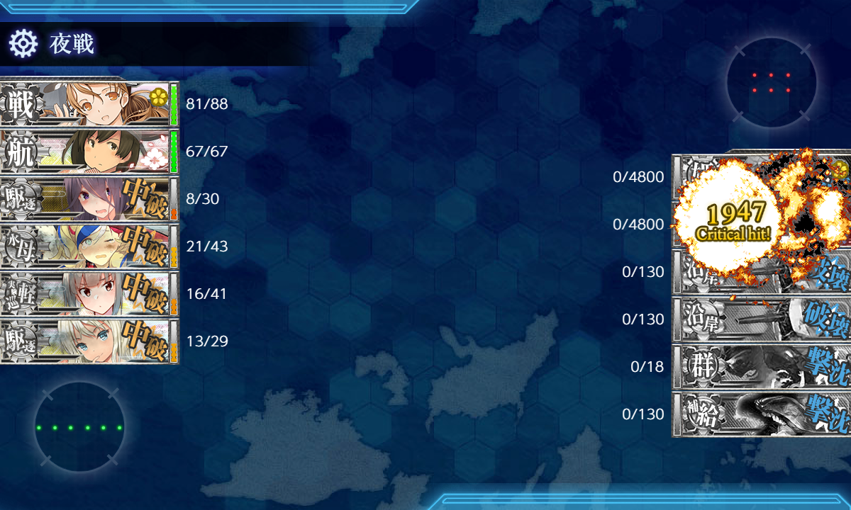 空母は正直1巡目でつぶされたので活躍は道中だけでした。 ><