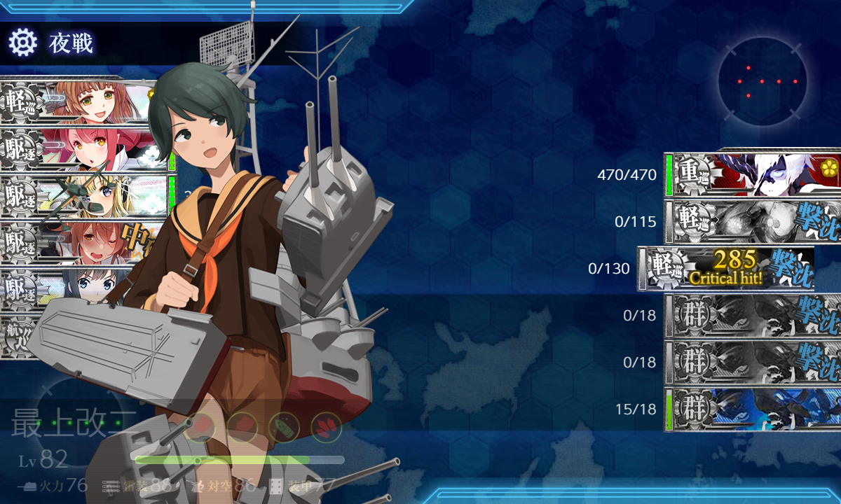 本当!疲れました。せめてネ級改とPT小鬼群なしにしてほしかったです。夜戦警戒陣でAは難しい。