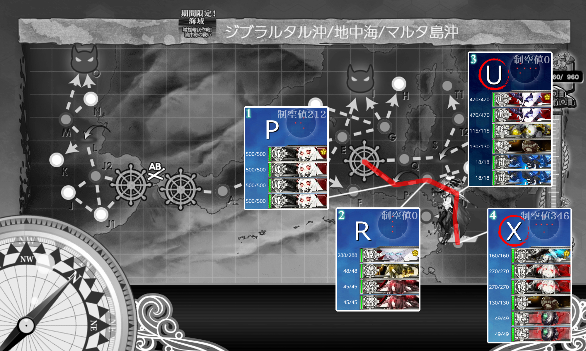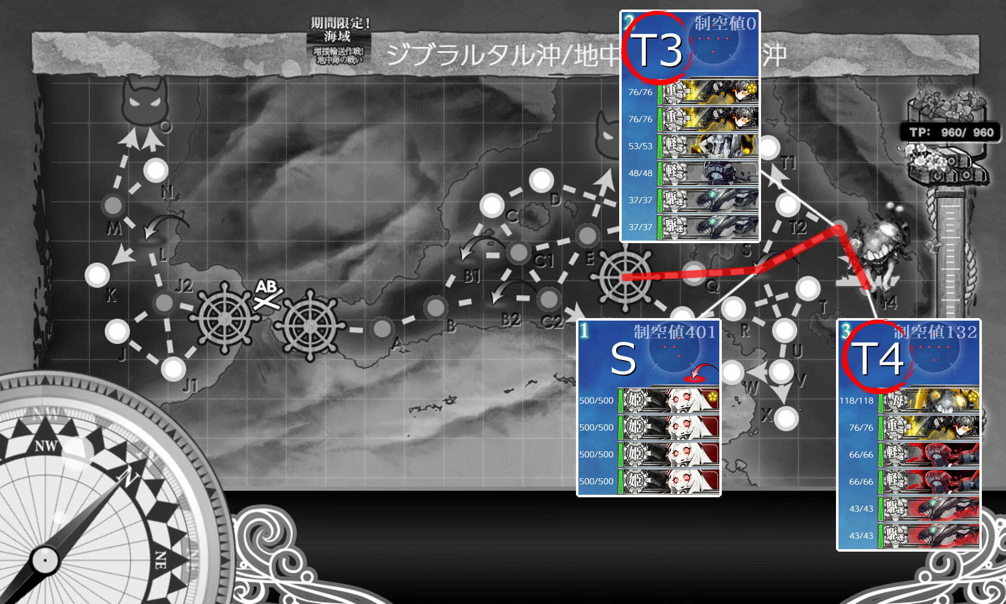 『【地中海拡張作戦】第10潜水戦隊作戦』は"T1/T4マス"を2回ずつS勝利なので2回分出撃すると一緒に消化出来ます。今回のギミック以外では指定されませんしこの機会にやっておくと吉。
