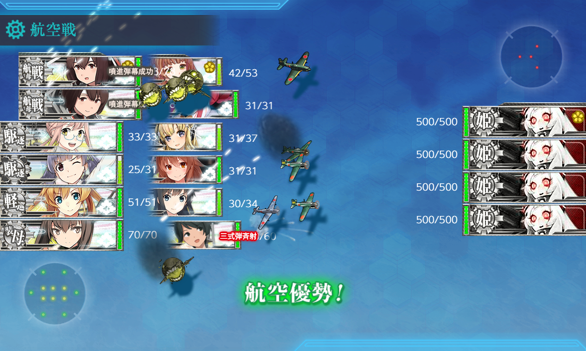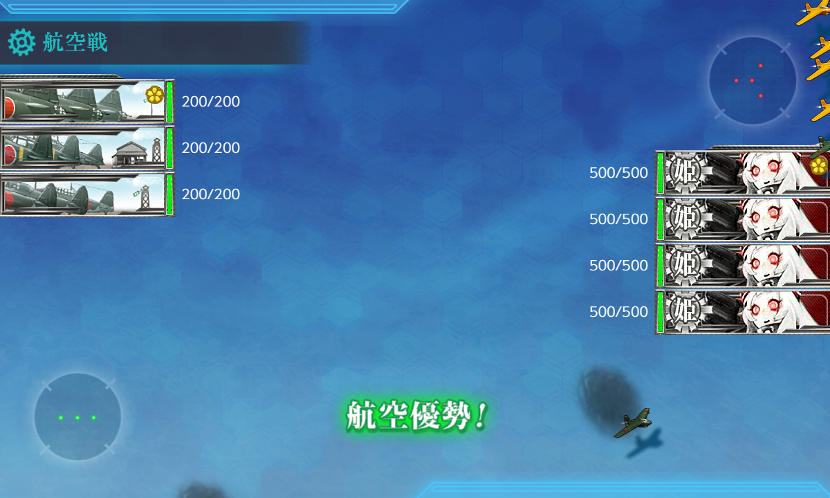 これで航空劣勢×1/航空拮抗×3になっているはずなので本隊は余裕を持って航空優勢↑が取れるはず。