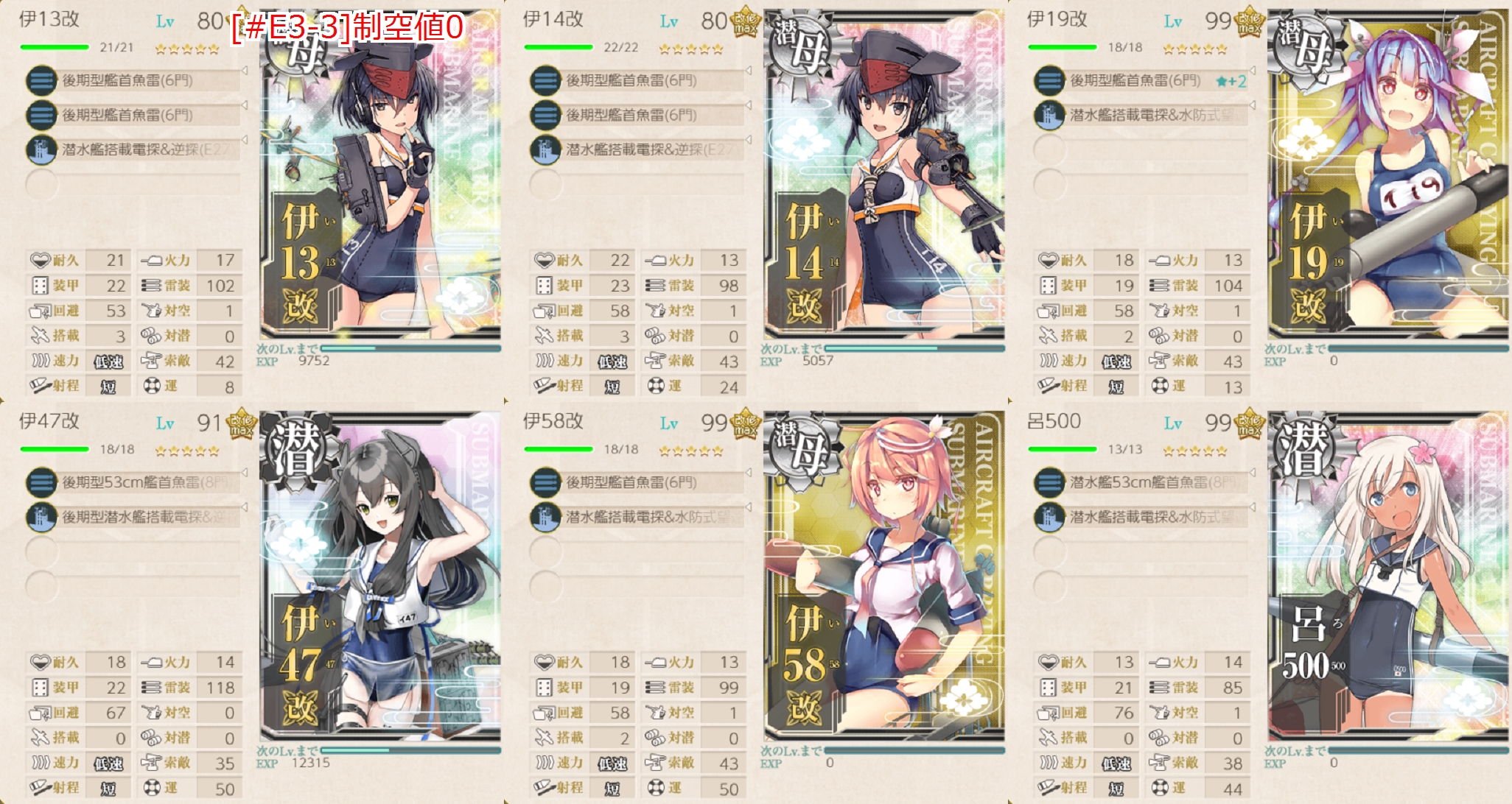 とりあえず潜水母艦入りなら"T1マス"確定っぽいのでほぼテンプレ編成?