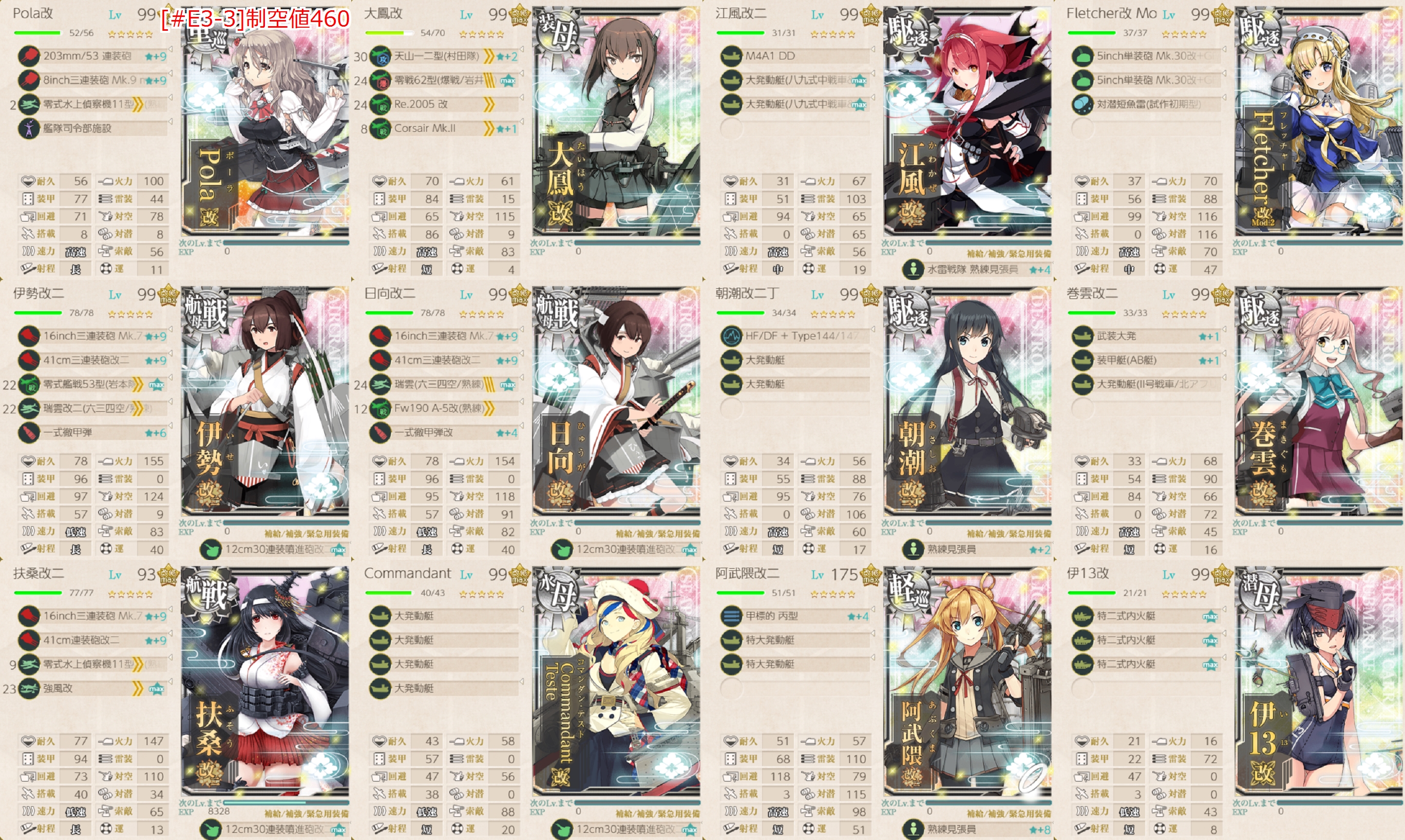 制空値はボス戦(Z2)時396↑あれば航空優勢↑になるので出撃時440~450辺りが目安?
