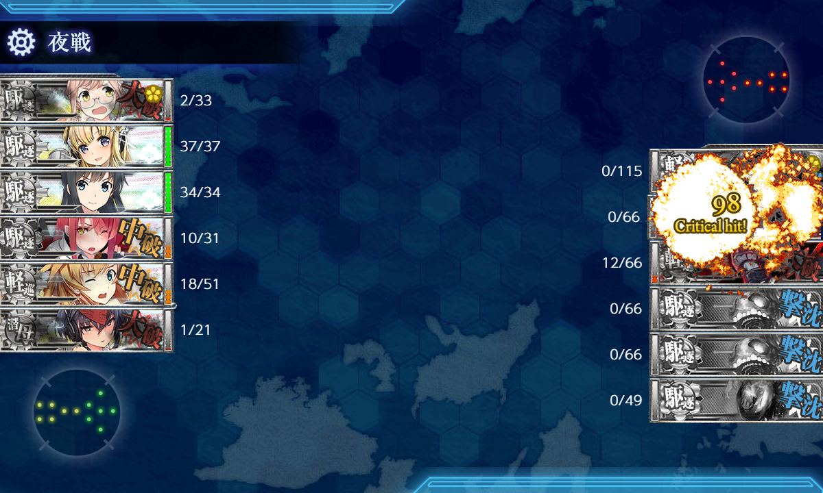 反航戦以下だと火力が出なかったので友軍がいなかったらA勝利も厳しかったです。