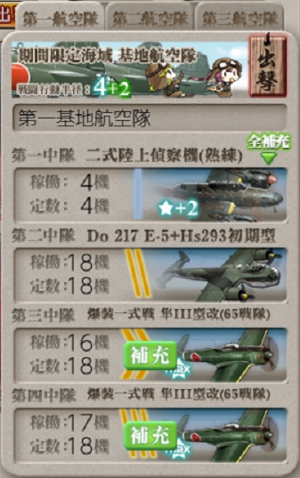 - 第一航空隊:Vマスに集中。必要行動半径は6.[制空権確保×2]