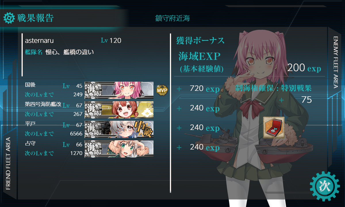 「占守/国後」の練度は充分なんですけど優先して耐久改修したい艦がいないんですよねぇ……。