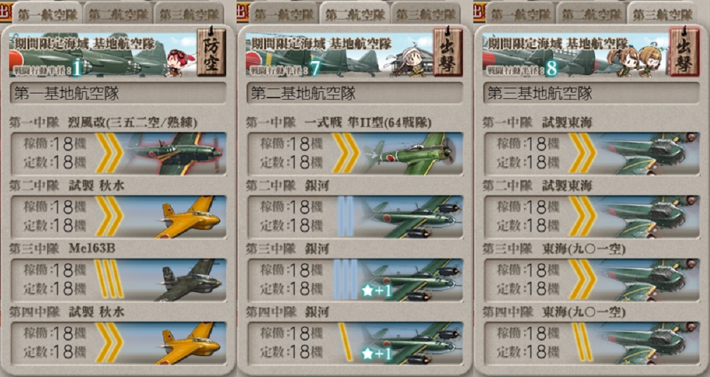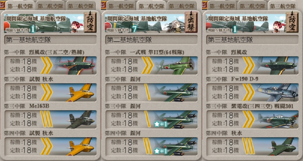 - 第一航空隊:防空。[航空拮抗~航空優勢↑×2]