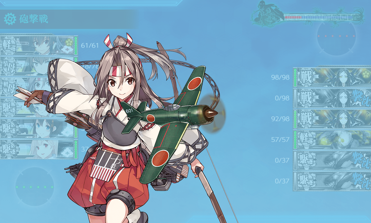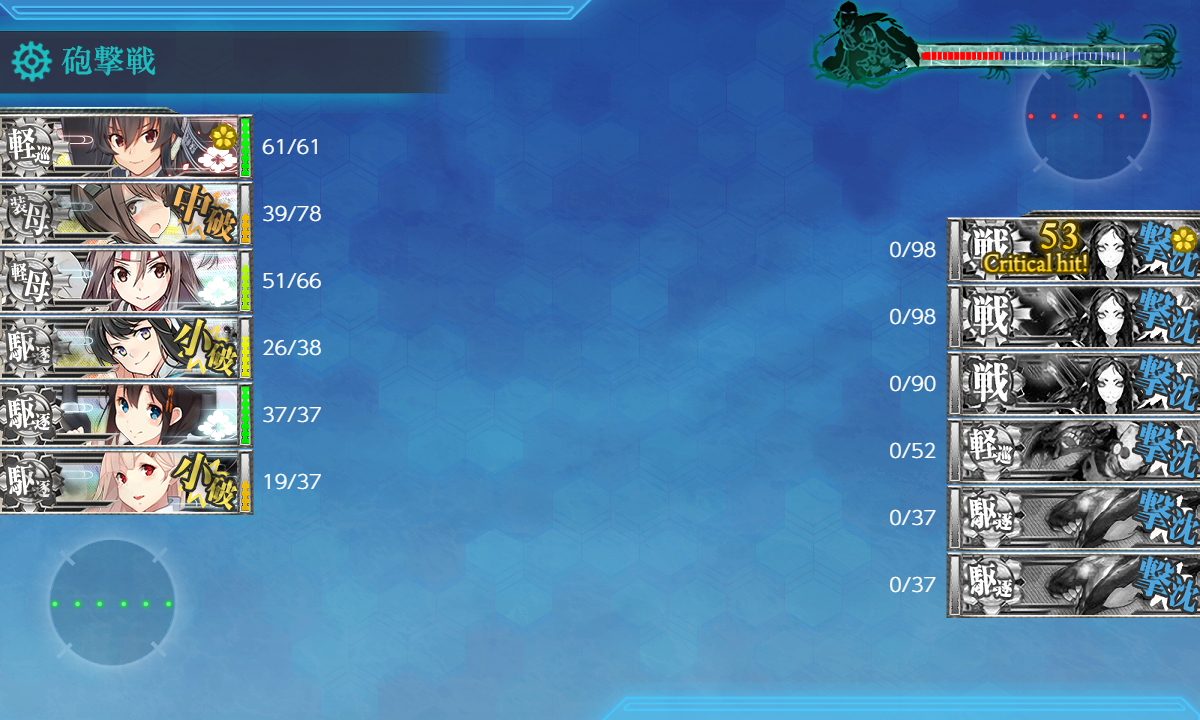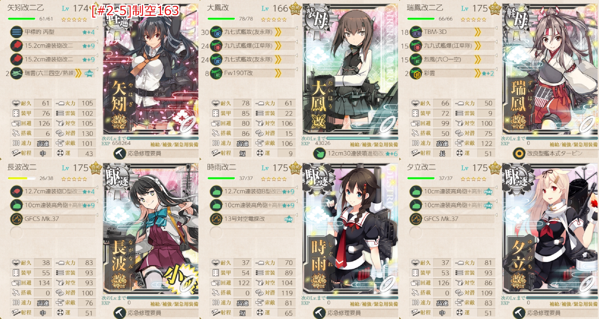 今のレベリングスポットであるE3-2 空襲3対潜3ルートは配置できなくもないんですが空母枠ひとつ食っちゃうので制空的に不安になっちゃうですよね・・・やっぱり演習かなぁ